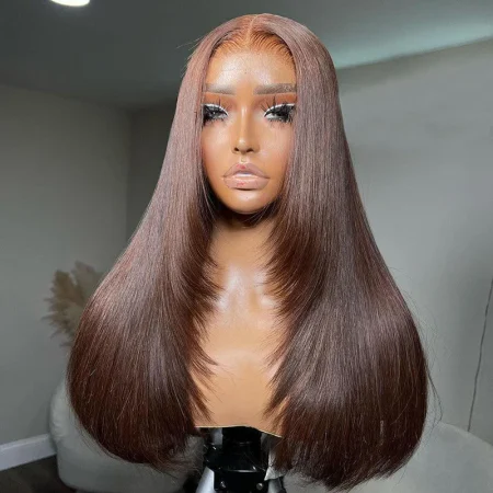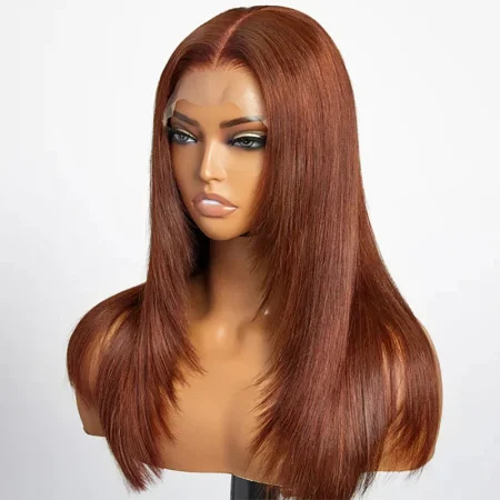 Layered Cut Copper Brown Color Human Hair Straight Glueless 6×5 Closure Wig Medium Length5 out of 5(21 Reviews)$225.22