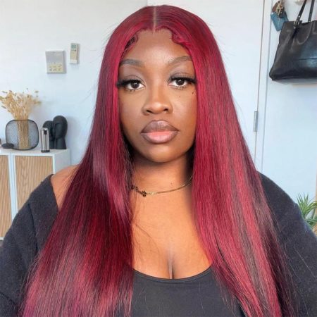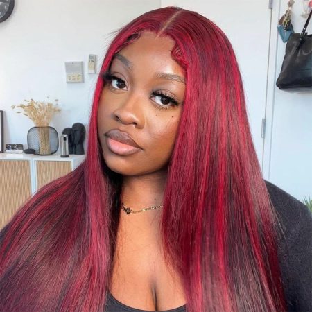 Flash Sale 99J Burgundy with Red Highlight Straight Hair Glueless 13×4 HD Lace Frontal Wig Piano Color Unit5 out of 5(63 Reviews) $ 159.48